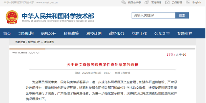 关于论文造假等违规案件查处结果的通报
